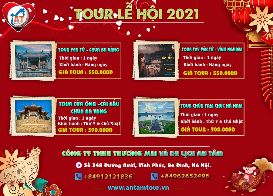 Đầu xuân năm mới là mùa của lễ hội trên khắp cả nước, nếu bạn đang băn khoăn không biết đi địa điểm nào, Antamtour xin giới thiệu giá tour lễ hội đầu năm 2021 để du khách có thể tham khảo và lựa chọn cho mình địa điểm lễ chùa thích hợp.