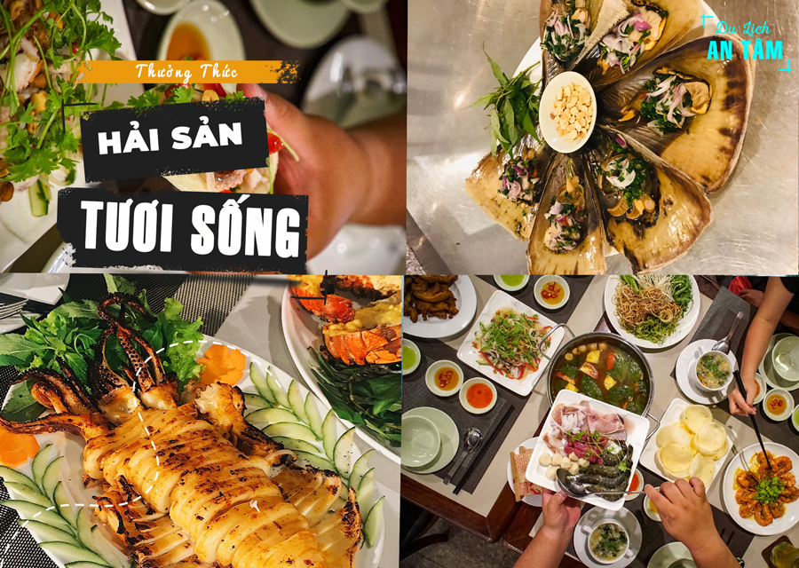Đến đây bạn sẽ được thưởng thức vô vàn món ngon từ hải sản tươi sống như: nhum nướng, tôm nướng, lẩu mực tươi, gỏi ốc, ghẹ luộc, cháo cá mú,…