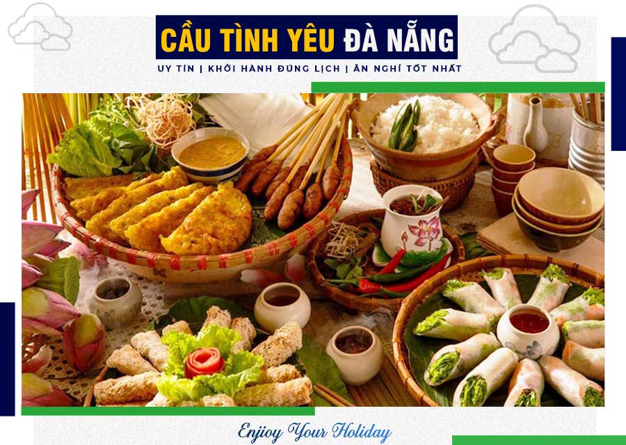 Khi đã đến tham quan cầu Tình Yêu Đà Nẵng thì bạn đừng quên thưởng thức các món ngon đặc sản Đà Nẵng, cảnh đẹp và đồ ăn ngon sẽ cho bạn một trải nghiệm vô cùng thú vị khi du lịch Đà Nẵng. Bỏ túi ngay những quán ăn ngon gần cầu Tình Yêu Đà Nẵng để tiện cho chuyến tour Đà Nẵng của bạn nhé!