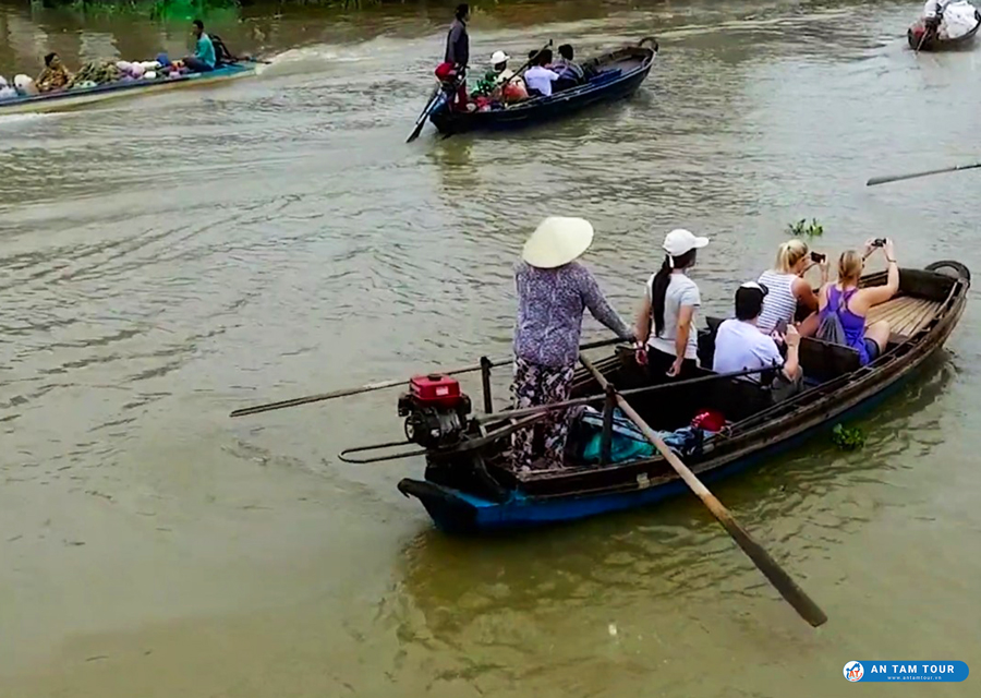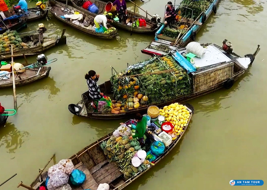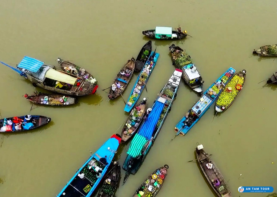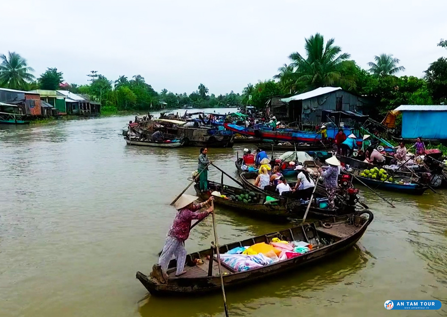 Khi đến đây bạn sẽ phải choáng ngợp giữa các tàu thuyền lớn nhỏ neo đậu để trao đổi hàng hóa, bên cạnh đó sẽ xen kẽ những chiếc đò len lỏi để buôn bán mưu sinh nước và trái cây cho các khách du lịch.