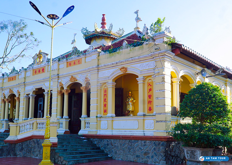 Chánh điện chùa Giác Hoa giống một công thự thời thuộc địa, ngự trên nền rất cao, kiên cố, màu vàng trầm mặc, mái ngói, nền gạch thẫm màu.. như một kiệt tác nghệ thuật. Antamtour chắc chắn rằng khi bạn đặt chân đến chùa Giác Hoa tự ở Bạc Liêu đều phải "WOW" vì quá tráng lệ.