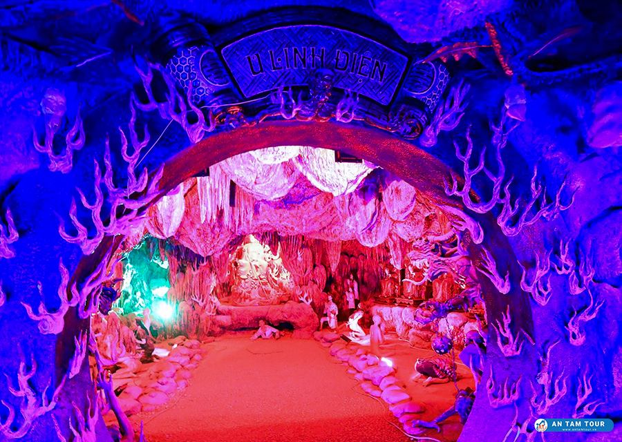 Dưới tầng ngầm của pho đại tượng Phật A Di Đà chùa Khai Nguyên, ngoài khu vực thờ cúng Bồ Tát, còn có một không gian đặc biệt được xây dựng để mô phỏng 18 tầng địa ngục. Khu vực này được thiết kế với mục đích truyền tải ý nghĩa của lục đạo luân hồi trong Phật giáo, giúp cho phật tử có thể hiểu rõ hơn về quy luật nhân quả và cách tu thân để tích đức.