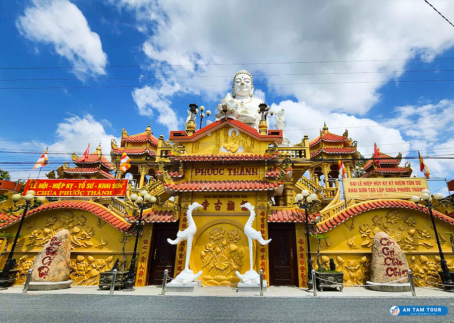 Chùa Phước Thành là một ngôi chùa với kiến trúc và cảnh trí vô cùng tuyệt đẹp nằm giữa nơi miền quê cây trái thanh bình yên ả bốn bề là sông nước bao quanh. Chùa Phước Thành An Giang cũng là ngôi chùa mà hiện nay được rất nhiều dân mạng tìm đến bởi nét đẹp độc đáo hiếm thấy ở miền Nam Việt Nam. Cùng Antamtour khám phá ngay bạn nhé!