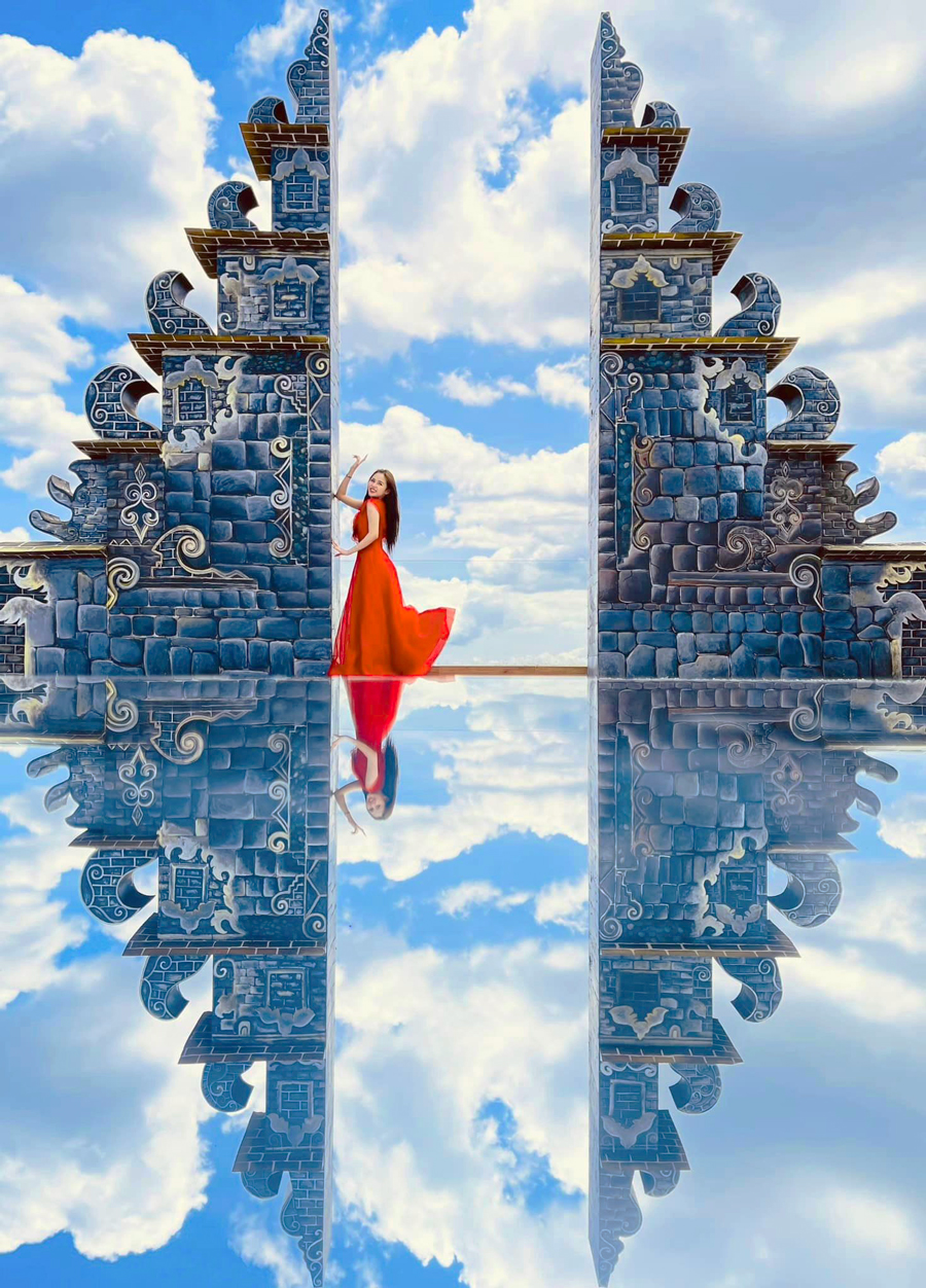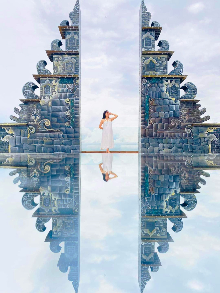 ▶️ Đứng nhẹ nhàng, nâng một chân khỏi mặt đất và giữ tư thế “đi trên không". Bức ảnh sẽ tạo cảm giác như bạn đang hòa mình vào không gian thần tiên của Cổng trời Bali.