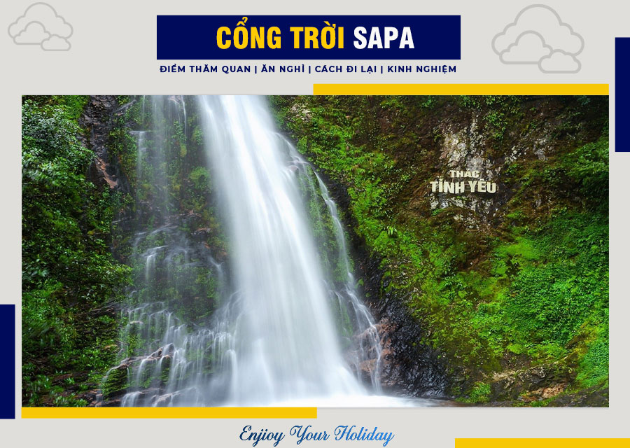 Thác tình yêu nằm ngay trên lối đi đến cổng trời Sapa, cách Thác Bạc khoảng 2km. Thác có độ cao 1.800m so với mực nước biển. Thác nằm sâu trong khu vực Vườn quốc gia Hoàng Liên Sơn với vẻ đẹp hoang dã được điểm tô bởi những bụi hoa đỗ quyên đỏ vàng rực rỡ giữa sắc xanh của đại ngàn.