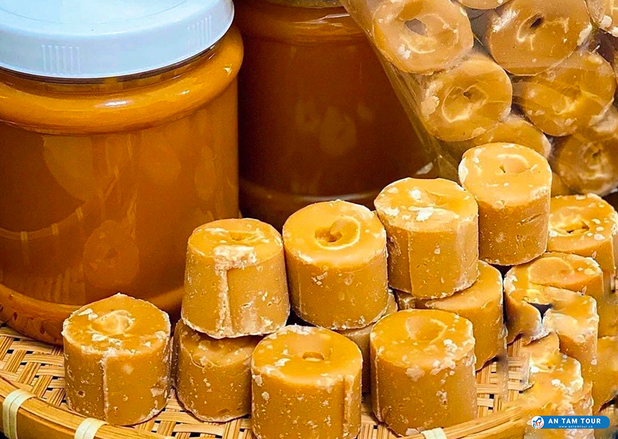 Đường thốt nốt là đặc sản nổi tiếng mà ai cũng biết nếu đã từng đến du lịch An Giang. Loại đường này có vị ngọt thanh, thường được sử dụng trong chế biến thức ăn để tăng thêm phần hấp dẫn và tốt cho sức khỏe. Đặc sản An Giang đường thốt nốt là một món quà lý tưởng để tặng cho người thân và bạn bè khi bạn đến miền Tây chơi.