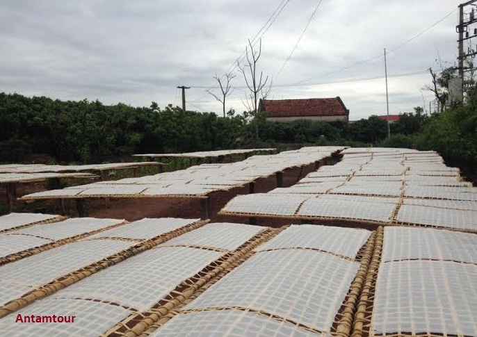 Nếu đến Bắc Giang tham quan trực tiếp quá trình làm mì Chũ nổi tiếng của người dân tại đây, ngay từ ánh nhìn đầu tiên tại thôn Thủ Dương, du khách đã thấy màu trắng của những giàn bánh tráng phơi dựa vào các tường xây bao quanh nhà ở, vườn cây của các gia đình.