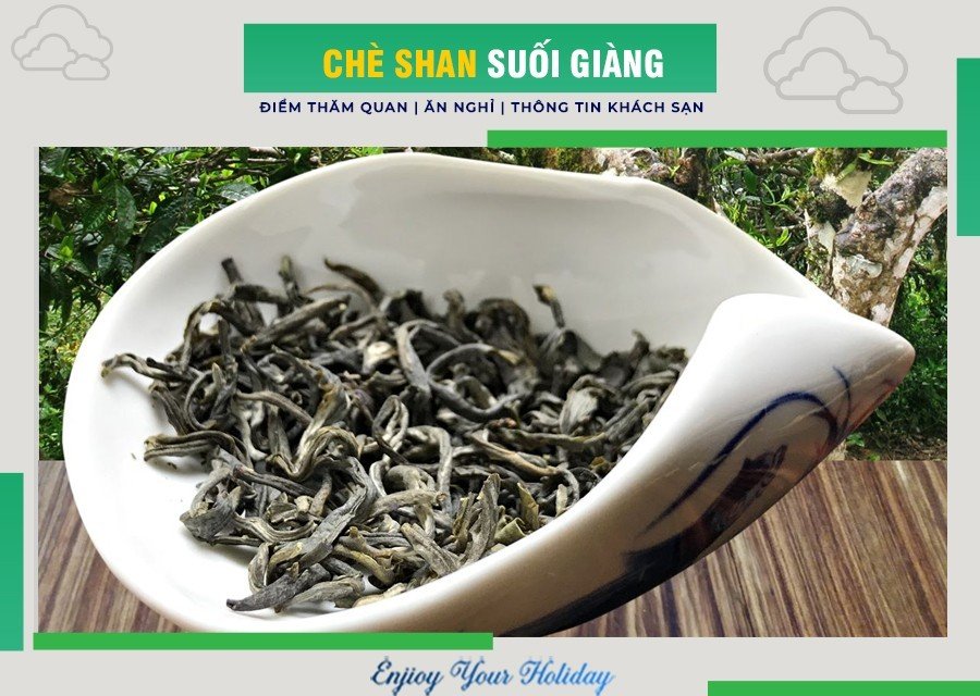 Chè Shan Tuyết Suối Giàng là một món tráng miệng đặc sản của vùng Suối Giàng, Yên Bái, nằm trong khu vực núi cao Tây Bắc Việt Nam. Búp và lá chè to, màu xanh đậm và có lớp lông tơ mịn, trắng như tuyết. Đặc điểm độc đáo của món này chính là sự kết hợp tinh tế giữa hương vị thơm ngon của chè và hương vị tự nhiên của hoa cỏ Shan Tuyết