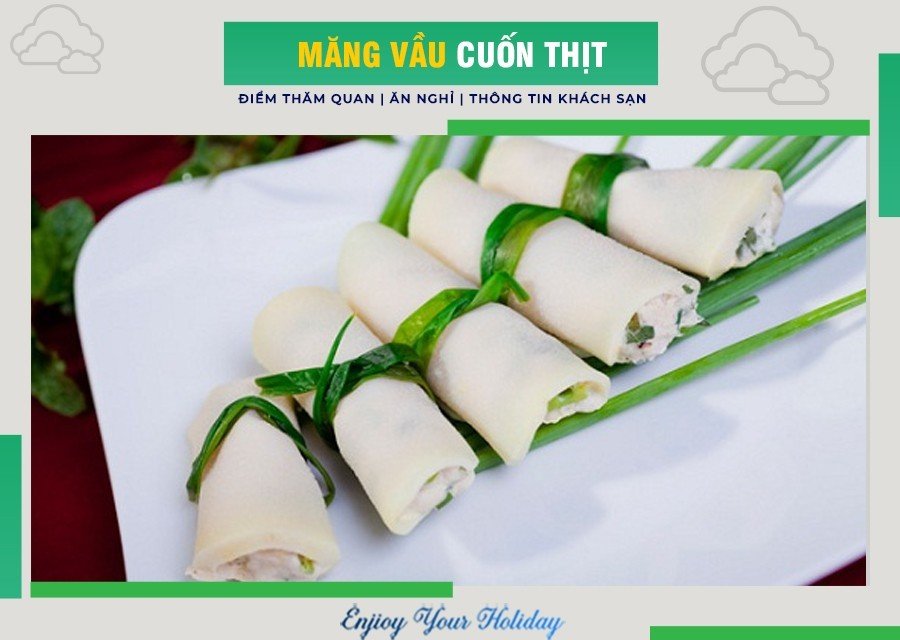 Măng vầu ở Yên Bái thường được đánh giá cao về chất lượng và hương vị, tạo nên sự nổi tiếng đặc biệt cho vùng này. Món măng vầu cuốn thịt thường được chế biến bằng cách sử dụng măng vầu tươi và thịt heo hoặc thịt gà, sau đó cuốn lại và nấu chín trong nước dùng. Hương vị ngọt của măng vầu kết hợp với vị béo của thịt tạo nên một món ăn ngon và hấp dẫn.