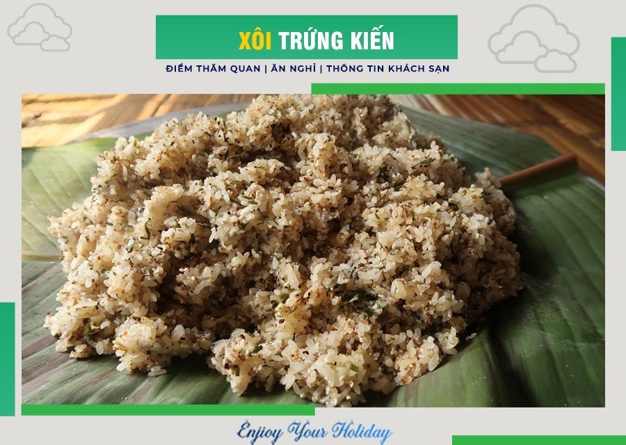 Xôi trứng kiến thường được chế biến tương tự như các loại xôi khác, bằng cách nấu nếp gạo trong nước cho đến khi nấp mềm và ngon. Sau đó, trứng kiến sẽ được thêm vào nếp gạo và trộn đều để tạo ra món xôi trứng kiến. Xôi trứng kiến thường được thưởng thức như một món ăn tráng miệng hoặc bữa sáng. Món này có hương vị độc đáo từ trứng kiến và độ ngọt tự nhiên của nếp gạo.