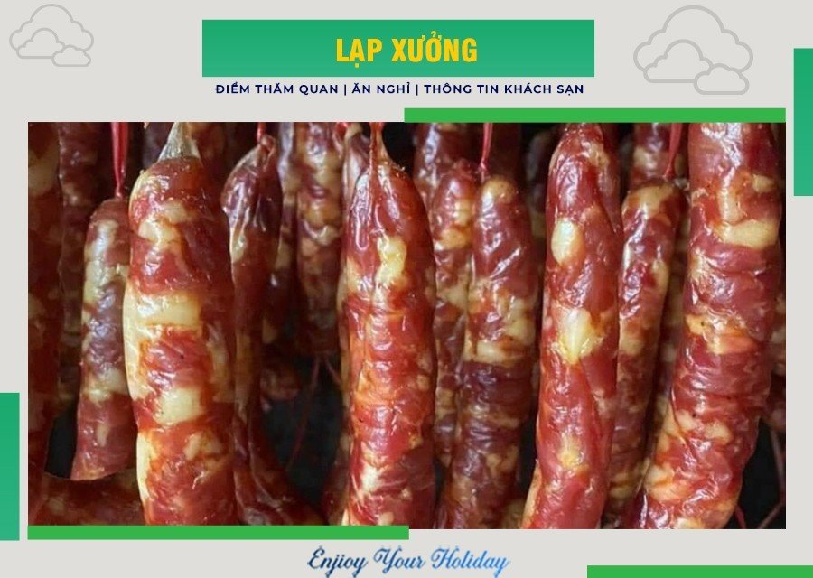Lạp xưởng Yên Bái được chế biến bằng thịt lợn được cắt nhỏ, ướp gia vị, điều đặc biệt của lạp xưởng là nguyên liệu sấy thịt và lạp xưởng phải dùng than hoa, vỏ trấu, lá quế tươi hoặc là thân cây quế. Do đó lạp xưởng Yên Bái có vị ngọt, mặn và thơm ngon, thường được ăn kèm với cơm trắng, bánh mì, hoặc làm nguyên liệu trong các món ăn khác.
