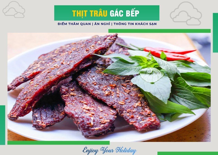 Món này có nguồn gốc từ việc chế biến thịt trâu theo phương pháp truyền thống của người dân tộc H'Mong tại Yên Bái. Thịt được tẩm ướp và sấy khô với các gia vị như mắc khén, ớt rừng tạo nên một hương vị đặc trưng và hấp dẫn.
