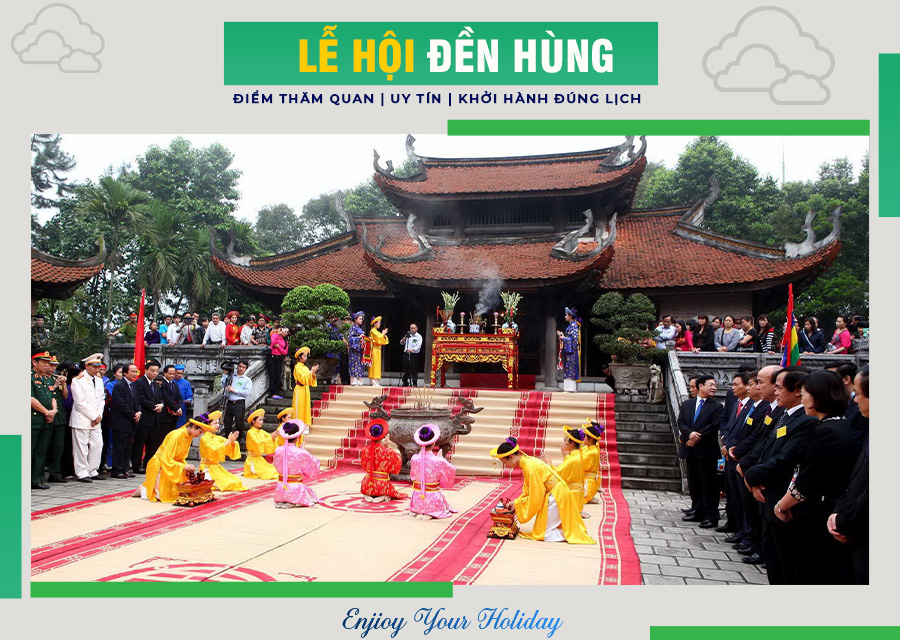 Thời điểm tuyệt vời nhất để tham quan đền Hùng là vào dịp Lễ hội đền Hùng diễn ra, tức là vào ngày 10 tháng 3 âm lịch hàng năm. Trong ngày này, lễ hội diễn ra với nhiều hoạt động truyền thống, diễu hành, tế lễ và các trò chơi dân gian. Du khách trải nghiệm không chỉ văn hóa truyền thống mà còn cả sự tôn kính và tình cảm kết nối với tổ tiên và văn hóa dân tộc Việt Nam.