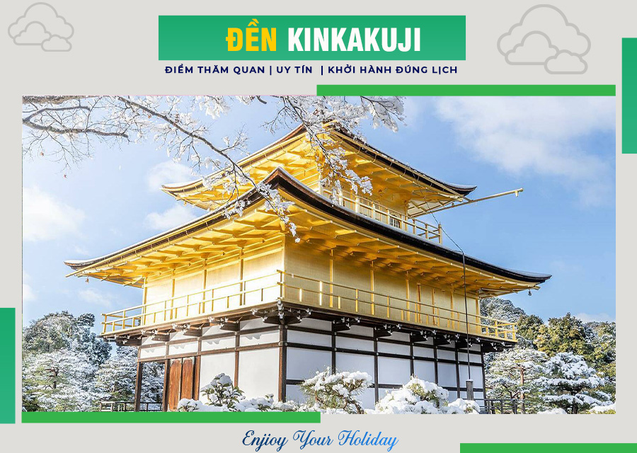 🔆 Mùa đông (Fuyu): Mặc dù về mùa đông rất lạnh nhưng đền Kinkakuji trở nên thơ mộng với tuyết phủ trắng mịn với tầng thượng bằng vàng của ngôi chùa tạo nên một cảnh tượng huyền ảo, trong khi cây cỏ và cánh đồng bao quanh được bao phủ bởi tuyết trắng. Khi tuyết rơi, đền Kinkakuji trở thành một điểm đến yên tĩnh và tĩnh lặng, tạo nên cảm giác thanh bình và cô đơn đặc biệt.