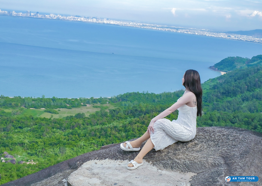 Hòn đá Cụ Rùa là tên gọi của một mỏm đá lớn nhô ra giữa lưng chừng núi, view hướng về phía biển. Đây cũng là một trong những góc ngắm biển và check in cực chill mà bạn không thể bỏ qua.