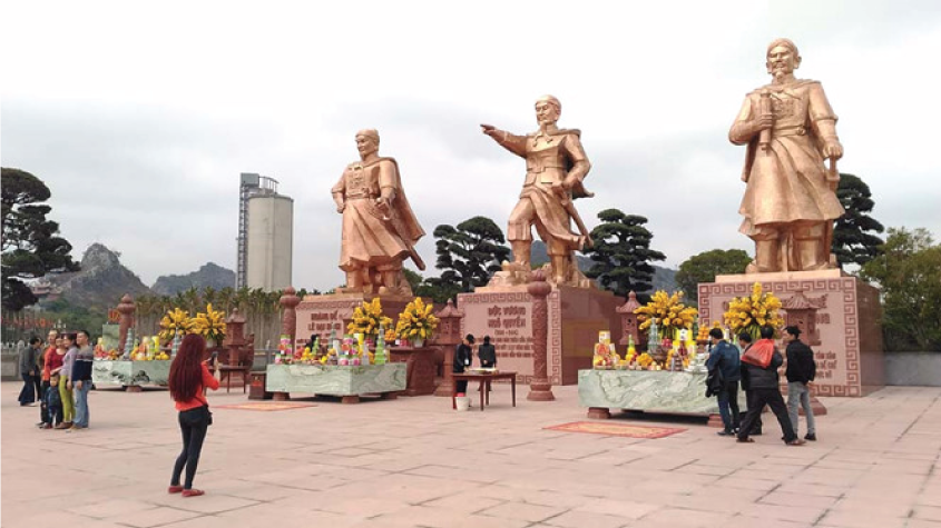 Nổi bật nhất trong khu di tích lịch sử Bạch Đằng Giang là quần thể ba ngôi đền gắn với tên tuổi ba nhà cầm quân lẫy lừng của dân tộc: Vua Lê Đại Hành, Quốc Công Tiết chế Hưng Đạo Vương Trần Quốc Tuấn và Đức Vương Ngô Quyền.