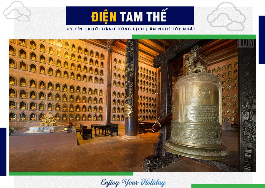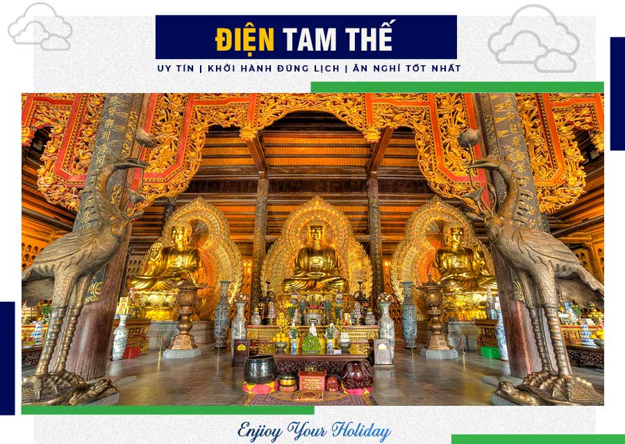 Đi tour Bái Đính 1 ngày, du khách sẽ thấy được rằng, điện Tam Thế tại đây không chỉ có bề ngoài nhìn thật lung linh, các chi tiết bên trong chùa tỉ mỉ, chu toàn đến từng chi tiết, mà còn là nơi làm cho tâm tĩnh lặng, hướng vào trong tâm của mình.