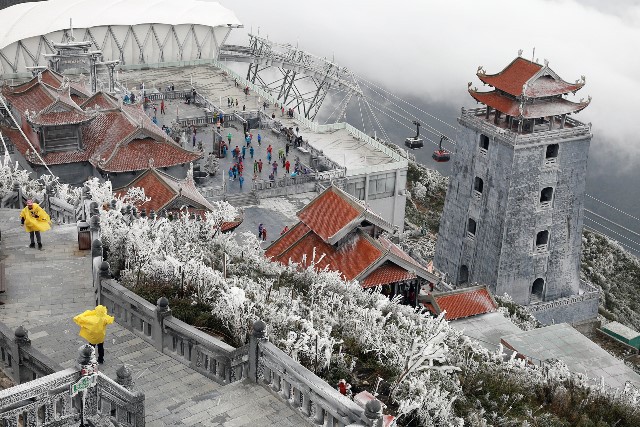 Lên đến đỉnh Fansipan, nhiệt độ Sapa giảm sâu, bốn bề gió lộng, sương mù cứ từng lớp một phả vào mặt mình lạnh buốt, nhưng thật lạ vì bạn sẽ cảm thấy điều này vô cùng sảng khoái, chính xác là cảm nhận này, một cảm nhận như mình đang đứng giữa chốn bồng lai được nhìn thấy trong các bộ phim thần thoại Trung Quốc.