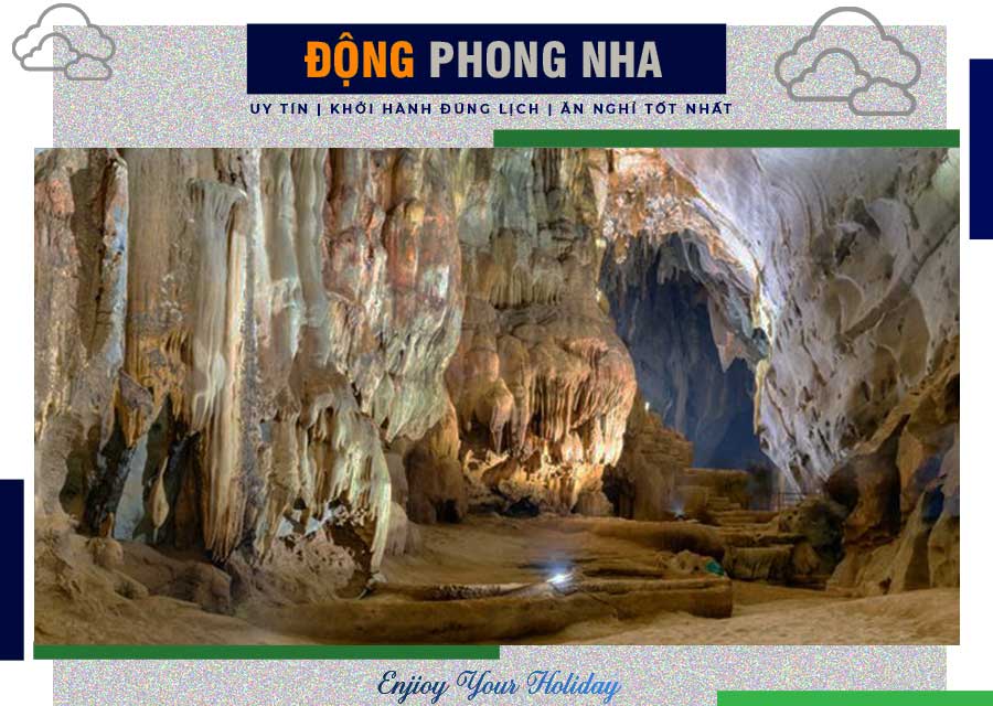 - Động Phong Nha chứa bãi cát và bãi đá ngầm rộng, đẹp nhất