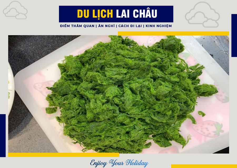 Rêu đá, đây là món ăn truyền thống của đồng bào Thái Tây Bắc. Trước đây nó thường được chế biến và bày trong mâm rượu hứa hôn của đôi trai gái. Với hương vị thơm ngon, cách chế biến độc lạ, rêu đá đã trở thành đặc sản bạn nhất định phải thử khi đến du lịch Lai Châu.