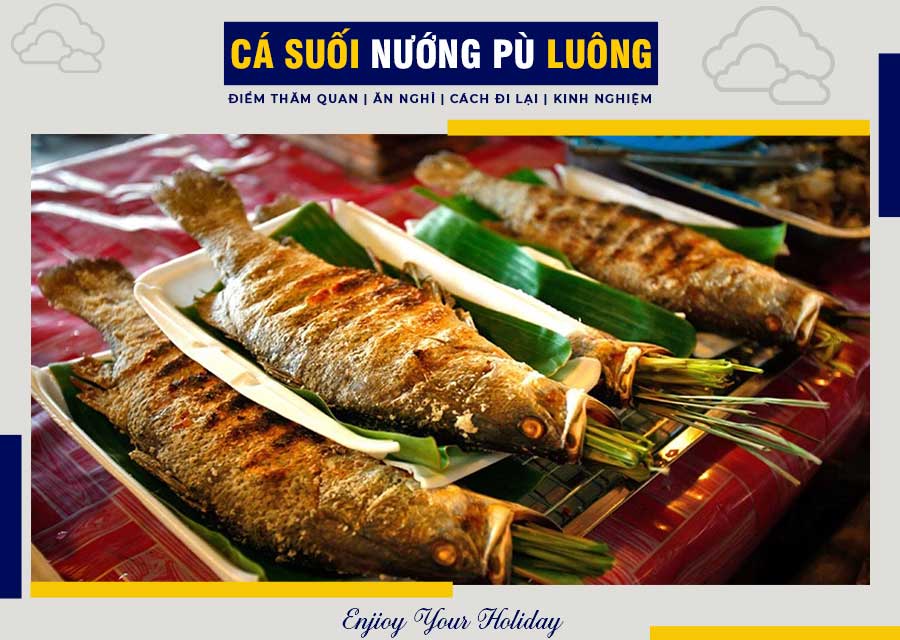 - Cá suối nướng -cá ở đây được bắt trên suối, thịt ngọt, chắc. Cá được làm sạch rồi ướp gia vị núi rừng như: mắc khén, rau thơm, ớt, sả… sau đó kẹp chặt vào thanh tre rồi nướng trên than tro ủ nóng đến khi chín vàng.
