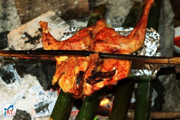 Trong những buổi chiều se lạnh ở núi rừng, được quây quần bên bếp lửa giữa nhà sàn, vừa nhẩn nha thưởng thức món gà nướng thơm ngon đậm đà, uống chen rượu cần bên bếp lửa bập bùng thực sự là mĩ vị trong cuộc sống bận rộn thường ngày.