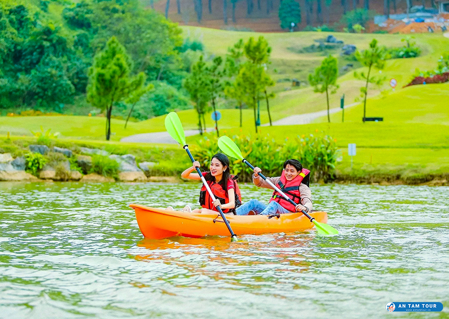 Nếu bạn đang tìm kiếm một môn thể thao giúp rèn luyện sức khỏe mà vẫn tận hưởng được khung cảnh thiên hiên tươi đẹp, chèo thuyền kayak là hoạt động dành cho bạn. Với không gian xanh mướt của rừng thông bao quanh, hồ Đồng Chương nước phẳng lặng phản chiếu bầu trời, sẽ mang đến cho bạn cảm giác thanh bình và tĩnh lặng.