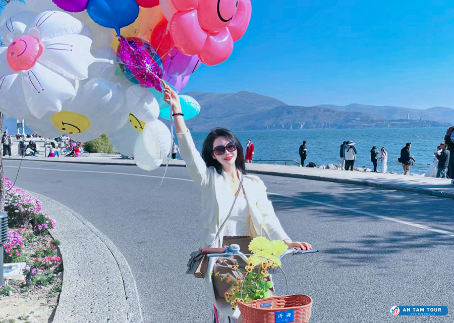 Bên cạnh đó, bạn cũng có thể khám phá làng Cai - ngôi làng ven biển gần thành phố cổ nhất để chứng kiến nhịp sống sinh động và những kỹ thuật đánh cá điêu luyện của người dân nơi đây. Bạn cũng có thể thuê những chiếc xe đạp với giá khoảng 20- 30 NDT/ngày để khám phá nhiều hơn những cảnh vật bên bờ hồ, tìm những khu phố nhỏ, những điểm check in thú vị.