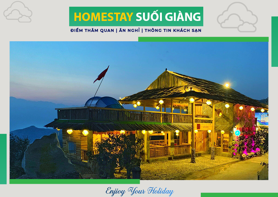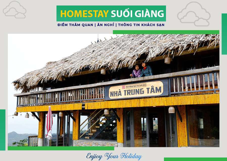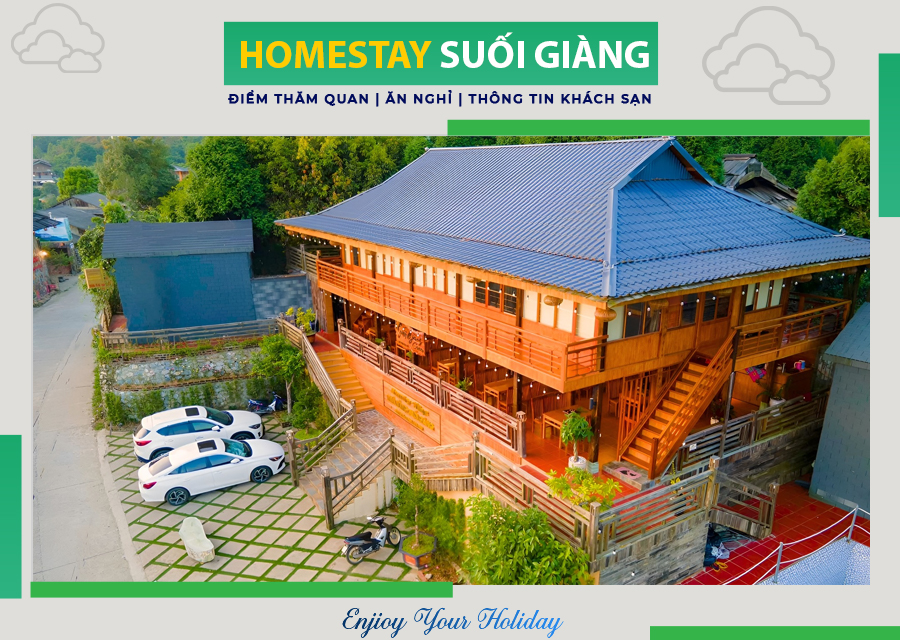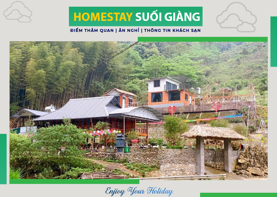 Suối Giàng Houses là một dự án được xây dựng với 30 homestay theo lối nhàn sàn truyền thống của người Mông bản địa và nằm trong bản văn hóa Pang Cáng. Hiện Nay Suối Giàng Houses 001 đã được hoàn thiện và chính thức đón khách và phục vụ các dịch vụ ăn ngủ nghỉ tại homestay.