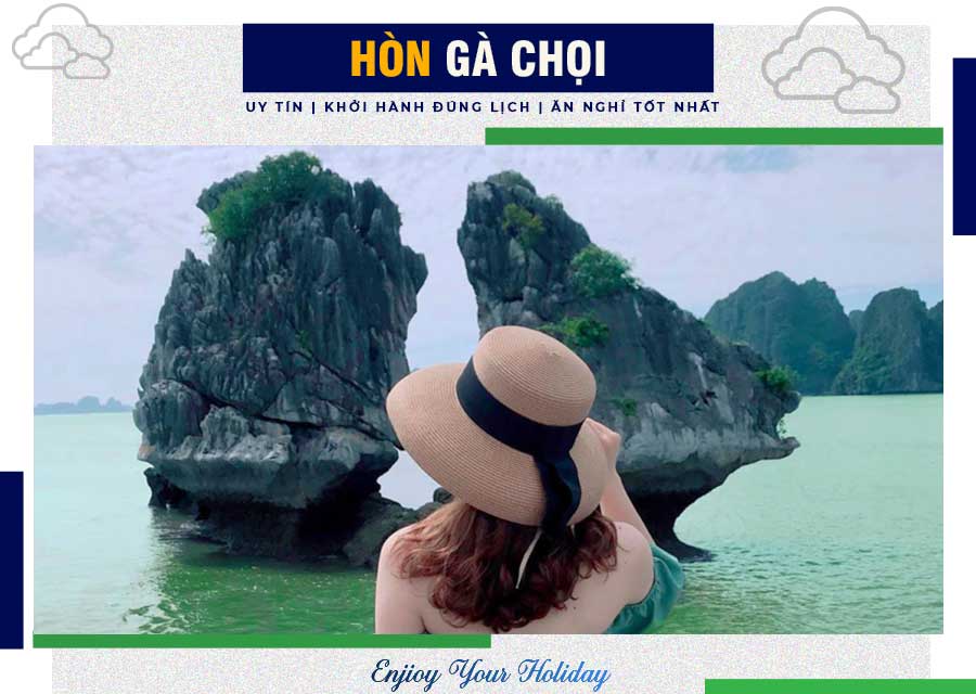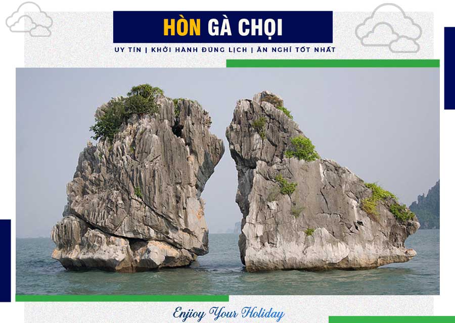 Từ bến tầu Bãi Cháy đi về phía Tây Nam, sau khi đi qua Hòn Chó Đá, Đỉnh Lư Hương thì bạn sẽ ngắm nhìn được hình ảnh Hòn Gà Chọi với hình dáng như hai con gà khổng lồ ( một trống – một mái ) với chiều cao khoảng 10m đang giương cánh đá nhau trên mặt biển mênh mông.