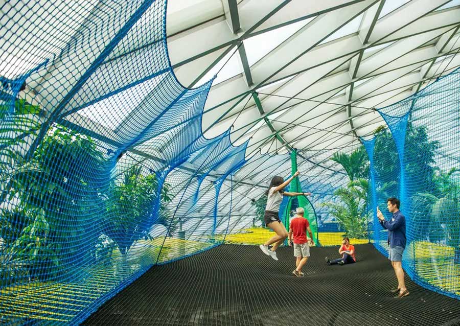 Bạn có cơ hội tận hưởng cảm giác bay trên không trung với trò chơi hệ thống lưới Sky Nets, ngắm kiệt tác thác nước Rain Vortex và khu rừng Forest Valley từ cầu kính Canopy, ngắm những cánh đồng hoa ngào ngạt hương thơm của vườn Petal Garden,…
