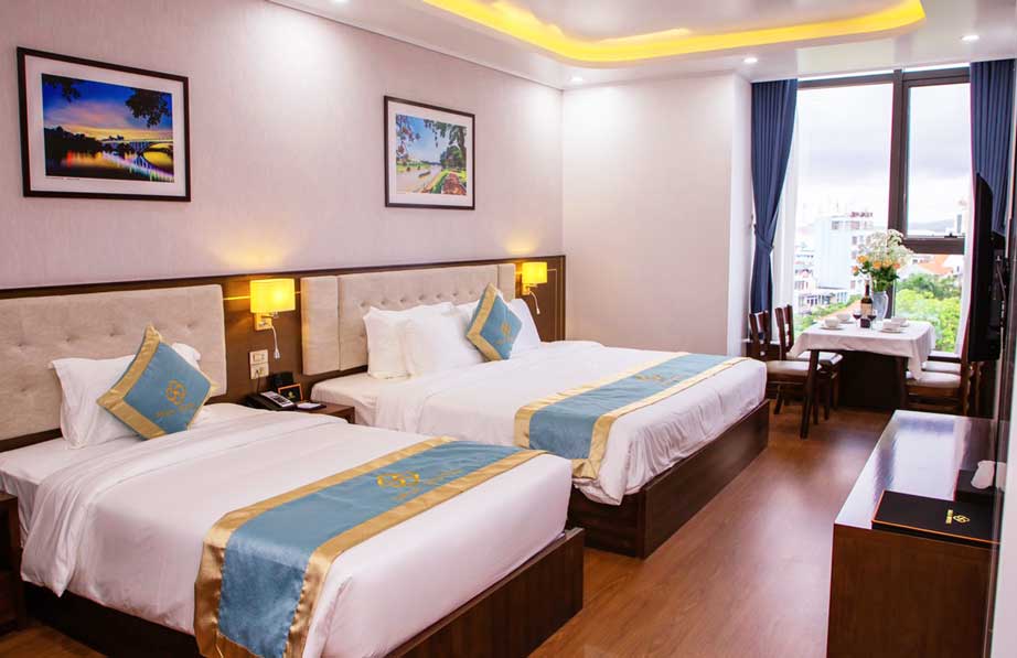 Là một lựa chọn được nhiều du khách đánh giá rất cao khi lưu trú. Khách sạn tại Móng Cái - Royal Hotel có không gian sang trọng với tông xanh làm chủ đạo, phòng ốc đầy đủ tiện nghi được bài trí rất đẹp cùng nhiều tiện ích như quán cafe, quầy bar sang trọng sẽ là một địa điểm lý tưởng cho chuyến đi của bạn.