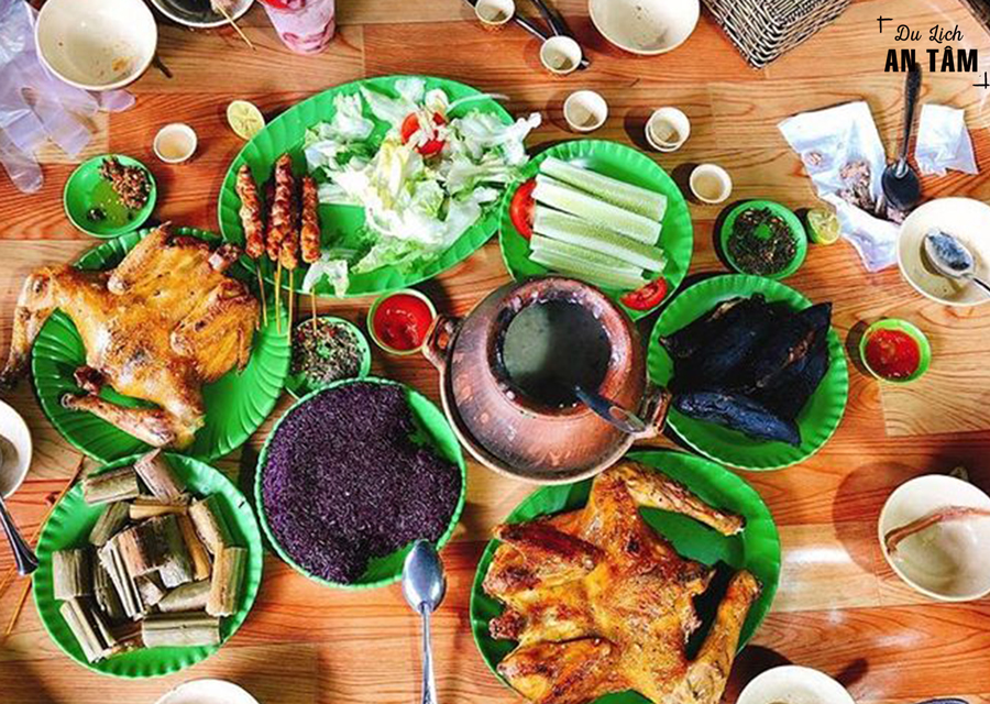 Theo kinh nghiệm của chúng tôi bạn có thể ăn trước ở thành phố rồi hãy đến đây hoặc có thể đem theo đồ ăn nếu bạn có ý định cắm trại tại đây. Dưới chân núi có khác nhiều các quán ăn và nhà hàng nhưng thực đơn cũng không được phong phú lắm và có phần hơi mắc. Nếu bạn muốn ăn đồ rừng thì hãy vào trải nghiệm các món sau nhé: rượu cần, cá lóc nướng, xôi nếp cẩm, cơm lam gà nướng, thịt heo rừng.