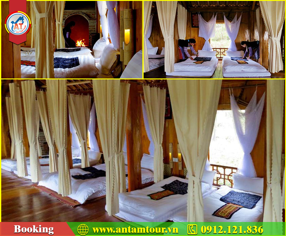 Homestay có 2 khu chứa được khoảng 50 người , mỗi sàn chứa được khoảng 25 người được trang bị chăn , đệm gọn gàng và sạch sẽ. Khi mùa đông đến thì ở các sàn ngủ có lò sưởi vô cùng ấm áp .
