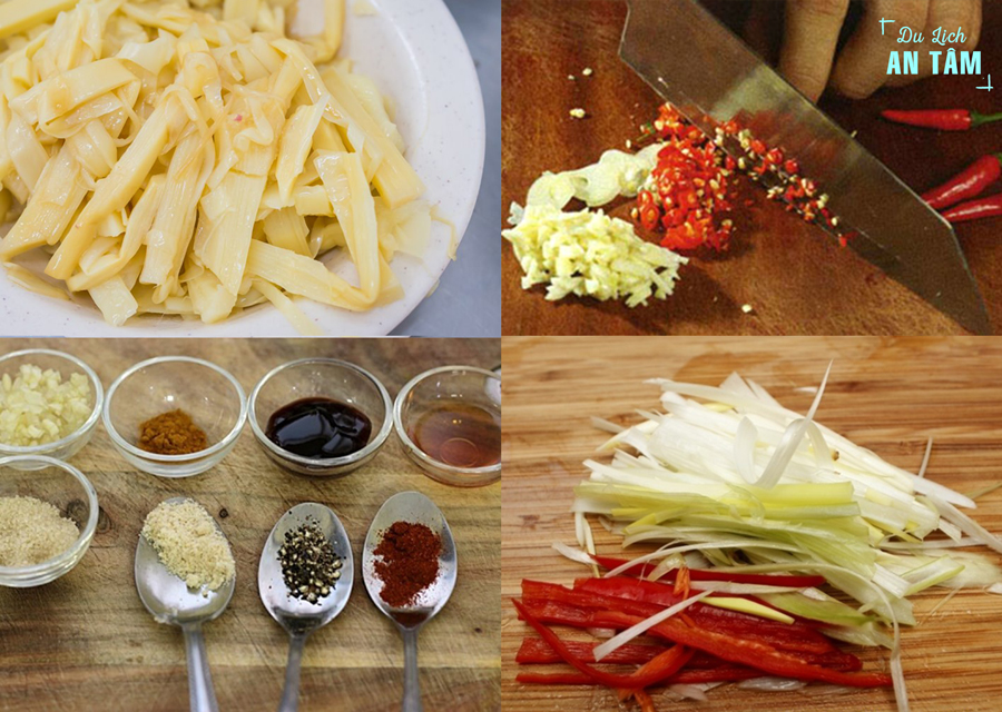 Hành, tỏi băm nhỏ, măng cắt mỏng