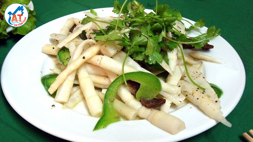 Cũng chính vì vậy “ măng trúc luộc chấm muối vừng” đang là món ăn được yêu thích nhất nơi đây, giống như tên của nó, món ăn này chế biến rất dễ dàng , gần như giữ lại được hương lẫn vị vẹn nguyên của măng trúc.