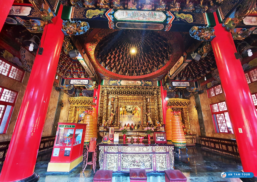 ⏭️ Bước vào cánh cổng của nơi đây giống như cung cấm của những Hoàng đế thời xưa, con đường dẫn vào chùa được trang trí hoa văn rất tỉ mỉ. Các cây cột được sơn màu đỏ và khắc dòng chữ Nho nhằm mục đích giáo dục nhân cách con người.