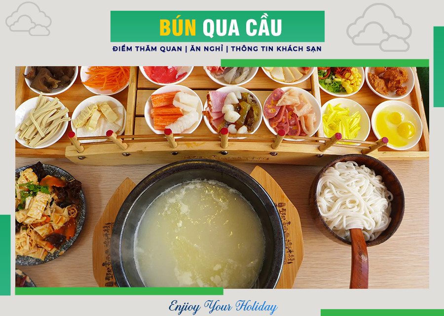 Đặc biệt khi đến Mông Tự bạn đừng quên ghé thăm cổ trấn Bún Qua Cầu và thưởng thức món ăn đặc sản bún qua cầu. Đây là bát bún khổng lồ được ví như chậu rửa mặt cùng với gần 20 nguyên liệu ăn kèm. Người Trung Quốc cho rằng ăn bát bún này trước kì thi sẽ mang lại may mắn, đỗ đạt cho sĩ tử.