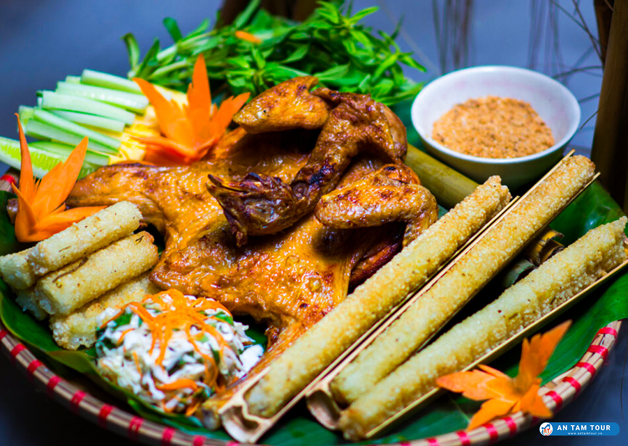 Tại Ngã Ba Đông Dương có nhiều món ăn đặc sản thơm ngon như: gà nướng bazan, gỏi lá é, cơm lam,... Tới đây, bạn nhất định phải thưởng thưởng thức những món ăn này để cảm nhận được hương vị độc đáo của ẩm thực núi rừng Tây Nguyên.