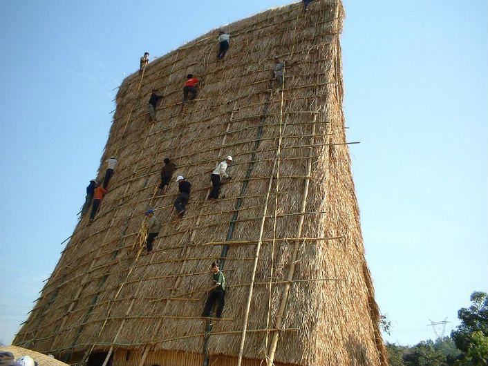 Làm sao để nhà rông vừa vững chãi với nắng gió vừa đẹp với văn hóa người Ba Na. Đặc biệt, mái nhà rông là mái ép, phía dưới mái uốn cong vào phía trong, hai đầu hướng ra ngoài như lưỡi rìu- đó chính là ngôi nhà truyền thống mơ ước của người Ba Na bao đời.