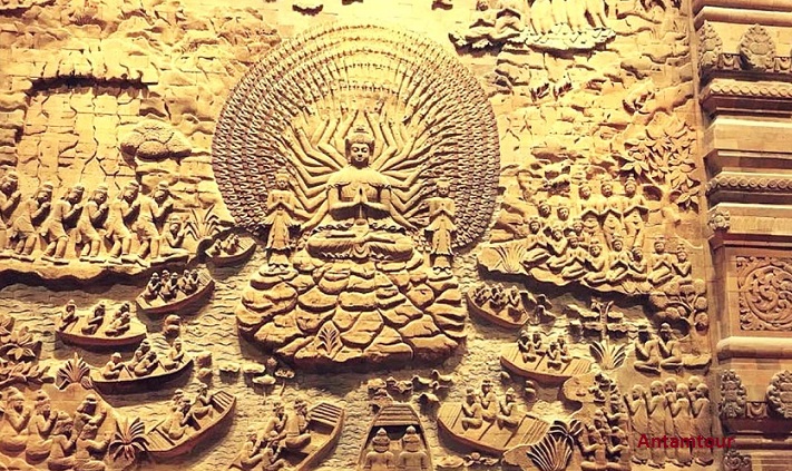 Bức tranh chạm khắc đá và tượng phật tại chùa Tam Chúc