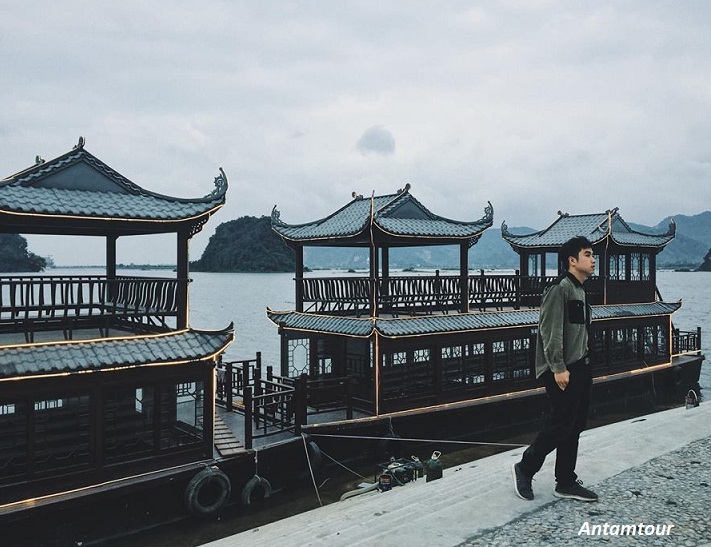 Điều này giúp cho những con tàu nơi đây cũng trở thành view chụp ảnh vô cùng đẹp. Tàu được thiết kế theo phong cách lầu các 2 tầng ngày xưa, không gian mở, rất thuận tiên cho du khách thưởng ngoạn cảng sắc Tam Chúc.