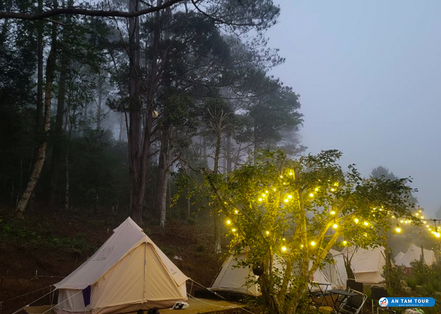 Một trong những trải nghiệm thú vị khi đến rừng thông Măng Đen mà bạn không thể bỏ lỡ chính là cắm trại. Bạn có thể hòa mình vào cùng thiên nhiên, cũng như có thể tự tay dựng lều trại và cùng nhau tổ chức những bữa tiệc nướng BBQ, nhâm nhi cafe rừng thông Măng Đen...