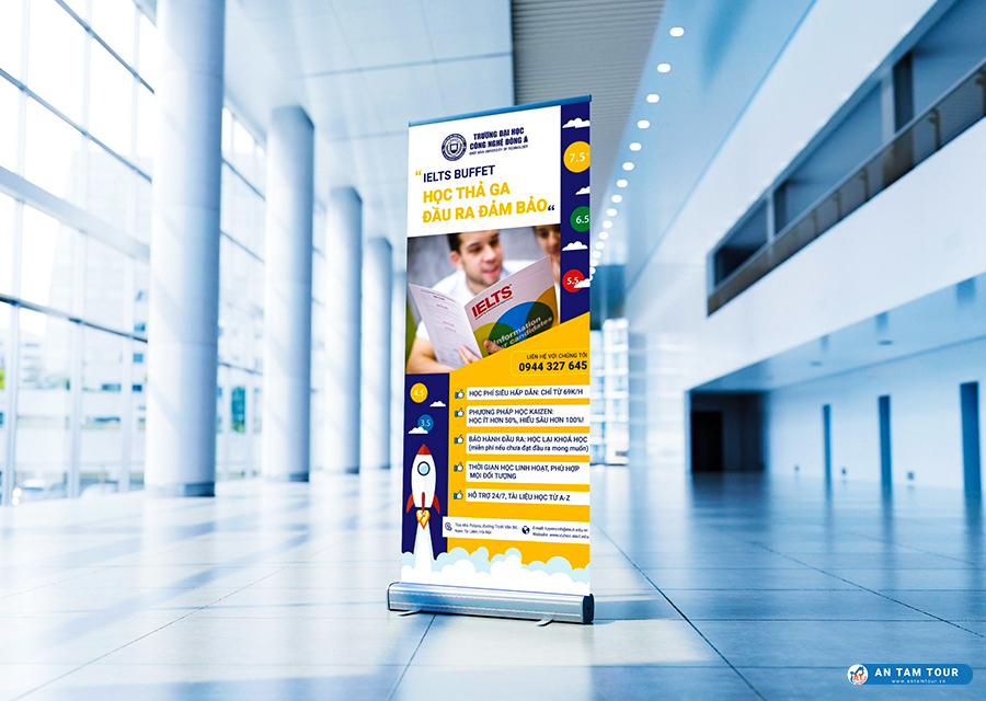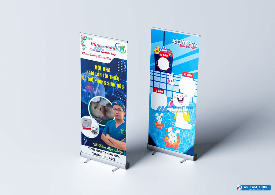 - In standee ( Kích thước 0,8 x 2 mét + Gắn cuốn ): giá tham khảo từ 80.000 đồng/ tấm