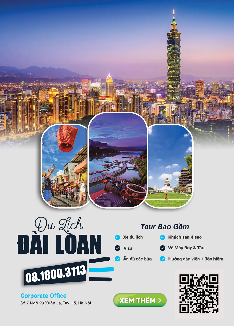 Tour Đài Loan khởi hành 5 ngày 4 đêm giá chỉ từ 12.690.000 VNĐ, thăm quan Toà tháp 101, Đài tưởng niệm Trung Chính, chợ đêm Tây Môn Đình, Thác nước Thập Phần, Nhà hát Opera Đài Trung, Hồ Nhật Nguyệt, được tặng bữa lẩu Buffet Shabu và còn nhiều điều hấp dẫn khách, chi tiết vui lòng đọc thông tin chi tiết dưới đây.
