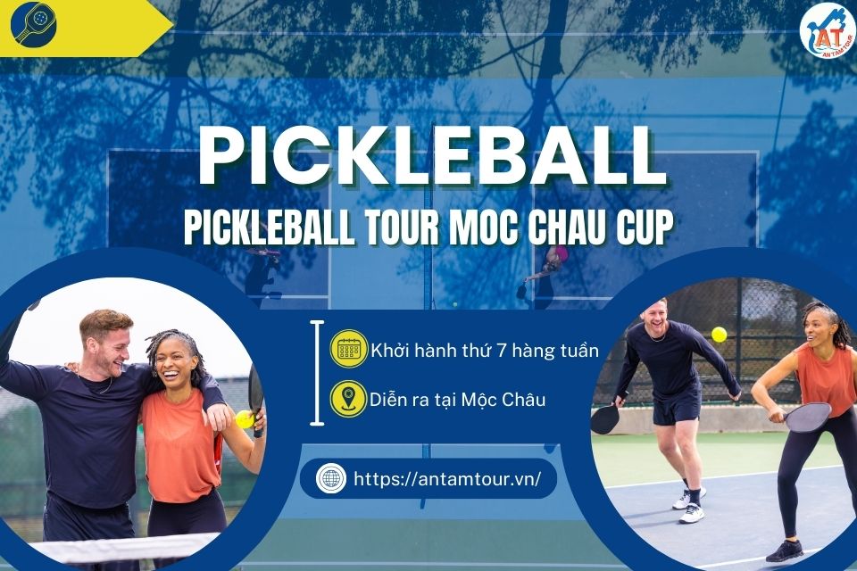 Antamtour tổ chức ghép lẻ khởi hành thứ 7 hàng tuần với Tour Pickleball Mộc Châu 2 ngày 1 đêm, giá chỉ 1.499.000 VNĐ/khách, kết hợp giao lưu Pickleball – chơi thể thao – kết nối cộng đồng và tham quan các điểm nổi tiếng Mộc Châu như Vườn Hồng chín, Cam Ly, Vườn Mận, Dâu Tây, Đồi chè Trái Tim...