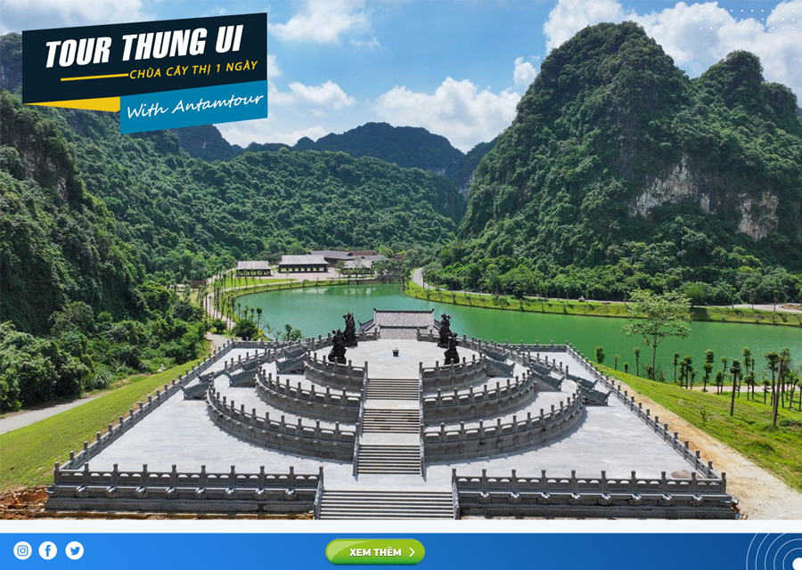 Điểm đến đầu tiên trong tour du lịch là Thung Ui -– xưa là hành cung Hoa Lư, nằm ở phía tây Kinh Đô được vua Đinh Tiên Hoàng lập Đàn Xã Tắc tại đây để tế trời đất cầu Quốc thái dân an mùa màng bội thu. Thung Ui với quy mô đồ sộ tái hiện tại những kiến trúc cung đình xưa đầy tinh tế với ba chính điện uy nghi, một đàn tế trời linh thiêng.