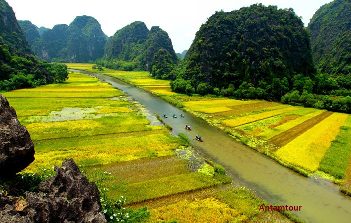 Chúng ta có thể dễ dàng tìm kiếm những thửa ruộng chín vàng đẹp trên khắp mảnh đất hình chữ S này như Tây Bắc, đồng bằng châu thổ, Ninh thuận…, nhưng để tìm kiến được một địa điểm có núi, sông, ruộng nước trải dài hai bên bở vừa thơ mộng vừa rực rỡ đặc biệt như tại Tràng An thì rất khó.