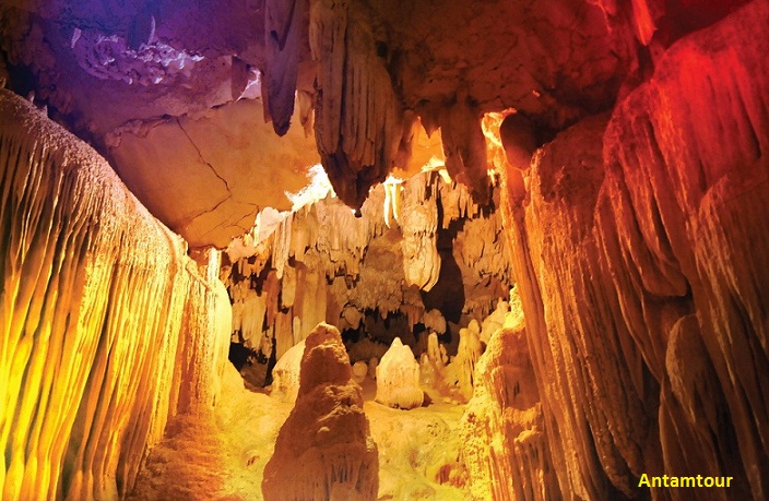 Nơi đây có khoảng 48 hang động thuỷ xuyên được đưa vào phục vụ du lịch, với những tên gọi rất gần gũi và độc đáo như: Hang nấu rươu, hang sính, hang si, hang ba giọt, hang sáng, hang tối, hang địa linh…