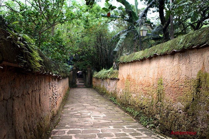 -Ngay từ ánh nhìn đầu tiên, du khách đã bị thu hút bởi chính hàng rảo bao quanh chùa, nó được đắp bằng đất nện, theo lối trình tường, cao khoảng 1m5, phủ rêu phong mang đậm dấu ấn thời gian, cùng với con đường nhỏ dẫn vào chùa như dẫn vào một chốn cổ tích. Bên trong chùa, từng cảnh quan nội viện đều được lựa chọn sắp đặt phù hợp, tinh tế, tạo một cảm giác cô tịch nhưng thoải mái, an nhiên.